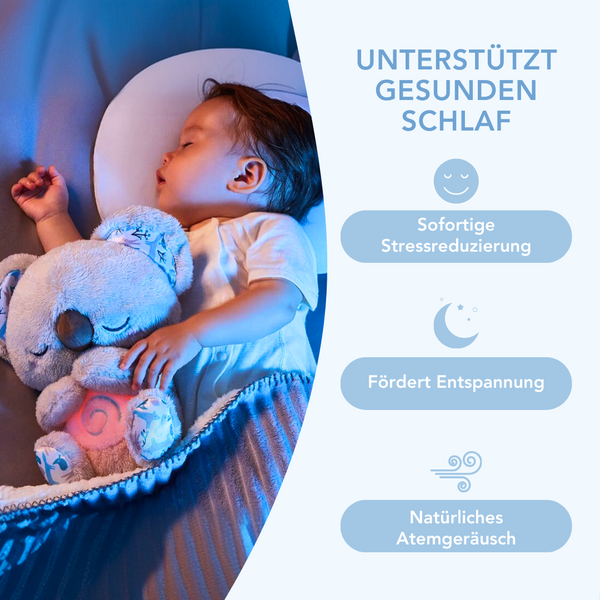 Der Schlummer Koala beruhigt dein Baby durch simulierten Herzschlag und sanfte Musik. So fühlt sich dein Kind sicher und geborgen, was zu einem ruhigeren Schlaf führt.